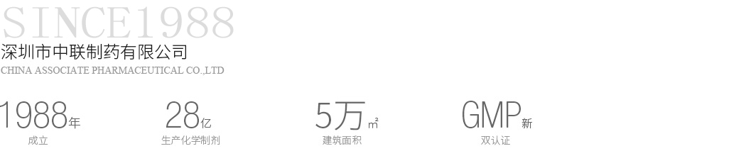 深圳市中聯制藥有限公司創建于1988年,主要從事內分泌系統用藥的研發、生產、銷售及售后服務。深圳市中聯制藥有限公司成立37年,始終堅持“合規、質量、創新、分享”的企業精神和“務實、進取、創優”的質量方針,并在內分泌領域治療糖尿病、甲狀腺疾病用藥方向,創造出“將唐君?美迪康(鹽酸二甲雙胍片)”、“加衡?(左甲狀腺素鈉片)、“補佳泰?(氯化鉀緩釋片)”等享譽全國的知名品牌藥品,先后多次被評為深圳市的“文明企業”、“重合同守信用企業”、“勞動管理信得過企業”、“高新技術企業”和廣東省“質量效益型先進企業”、將唐君?美迪康(鹽酸二甲雙胍片)系列兩個品規、補佳泰?(氯化鉀緩釋片)順利通過仿制藥一致性評價。