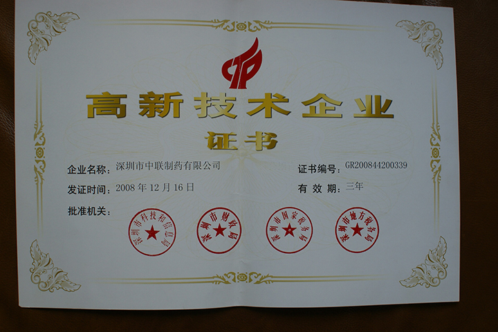 中聯制藥榮獲2008高新技術企業榮譽稱號
