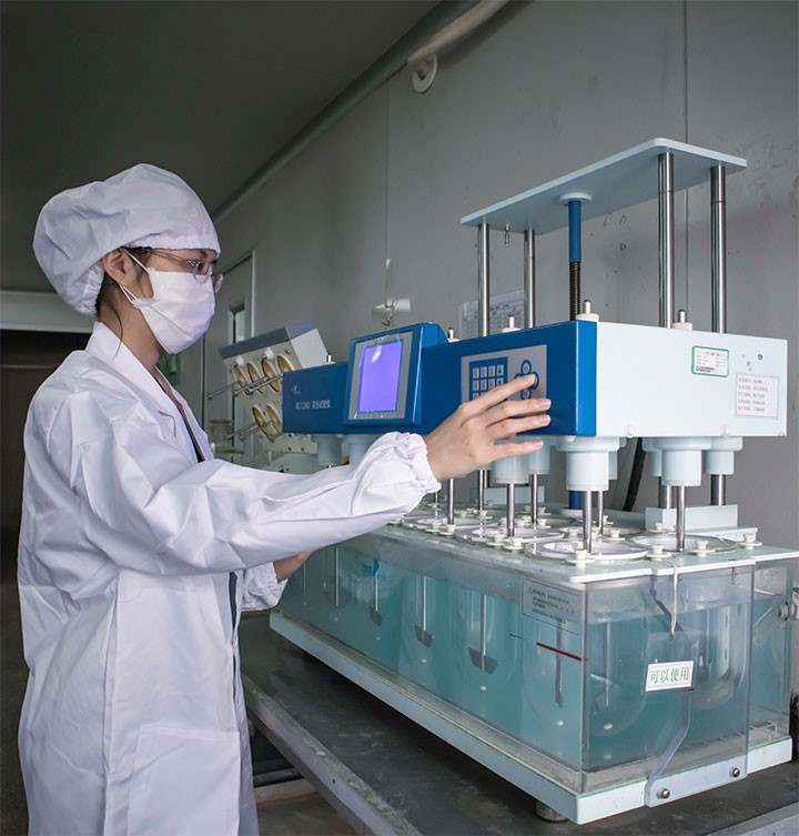 圖一:在實(shí)驗(yàn)室環(huán)境下,專業(yè)工作人員對(duì)氯化鉀緩釋片釋放度進(jìn)行檢驗(yàn),10-12小時(shí)片芯幾乎全部釋放,但依然能清晰看到完整藥片外形。